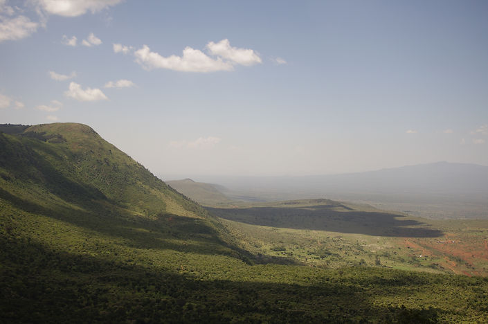 As you drop down into the Rift Valley, your first views are of Mount Longonot and Lake Naivasha, a beautiful freshwater lake fringed by thick papyrus. Hell's Gate National Park lies beside the lake and the park gets its name from the massive red tinged cliffs framing a geothermically active interior of steam vents and bubbling springs.